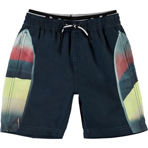 Neal er Molo's nye badeshorts med mere længde og loose-fit pasform her i sort med print af surfbrætter på siderne. Neal har en elastisk lining med printet logo, som giver en cool detalje. Molo's badetøj har UV beskyttelse 50+. Produkten är CE-märkt och testad enligt standarden EN-13758-1.