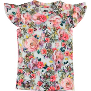 Neona er Molo's nye svømmebluse med korte ærmer, som udover se godt ud bestytter mod solens stråler, da alt Molo's badetøj har UV 50+. Her er Neona med blomster print lavet af palietter. Blusen er tynd og rar at have på og har en god bevægelighed. Mix og match t-shirten med Molo's badeshorts for et cool strand look. Produkten är CE-märkt och testad enligt standarden EN-13758-1.