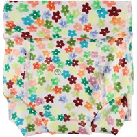 Ljusa läckagefria blöjbadbyxor till baby med ett sött mönster av blommor i olika färger. Tittar man noga efter kan man se ett peacetecken, eller två, bland blommorna. Badbyxorna är fodrade och har en elastisk, tätsittande passform som säkrar att de håller tätt om olyckan skulle vara framme. Detta betyder att de kan användas utan badblöja under. De är tillverkad av återvunnen, elastisk polyester, vilket gör dem enkla att ta av och på. De har ett högt UV-skydd på 50+, som effektivt skyddar mot solens strålar. Produkten är CE-märkt och testad enligt standarden EN-13758-1.
