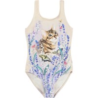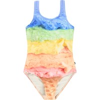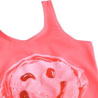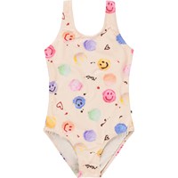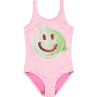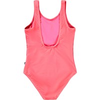 Sportig, rosa baddräkt med glassmönster för aktiva barn i återvunnen polyester med UV-skydd 50+. Baddräkten har en normal passform, är helt fodrad, har breda axelband och en djup rygg.