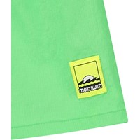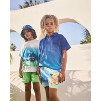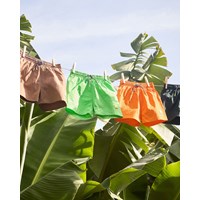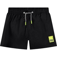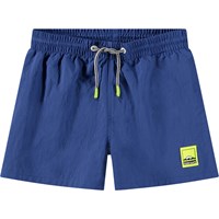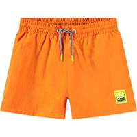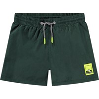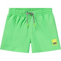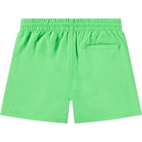 Sportiga gröna badshorts för aktiva barn i återvunnen nylon med UV-skydd 50+. Shortsen har en lös passform, når till mitten av låret, har en enkel bakficka, resår i midjan med dragsko och innerbyxor i mjukt mesh-material. Produkten är CE-märkt och testad enligt standarden EN-13758-1.