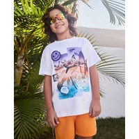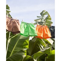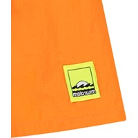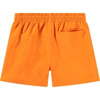 Sportiga orange badshorts för aktiva barn i återvunnen nylon med UV-skydd 50+. Shortsen har en lös passform, når till mitten av låret, har en enkel bakficka, elastisk midja med dragsko och mjuka innerbyxor i mesh. Produkten är CE-märkt och testad enligt standarden EN-13758-1.