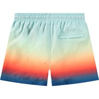 Sportiga badshorts för aktiva barn i återvunnen polyester med UV-skydd 50+. Badshortsen har en lös passform, når till mitten av låret, har en enkel bakficka, resår i midjan med dragsko och mjuka meshinnerbyxor. Badshortsen är ljusblå längst upp och övergår i färger som påminner om en soluppgång över havet. Produkten är CE-märkt och testad enligt standarden EN-13758-1.