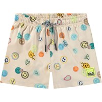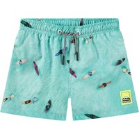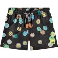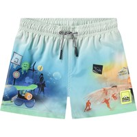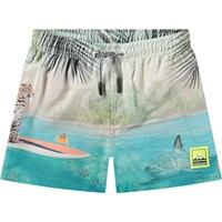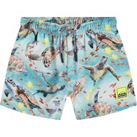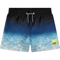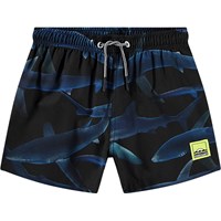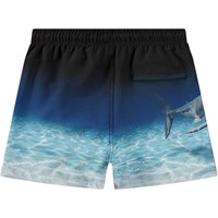 Sportiga badshorts för aktiva barn i återvunnen polyester med UV-skydd 50+. Badshortsen har en lös passform, når till mitten av låret, har en enkel bakficka, resår i midjan med dragsko och mjuka meshinnerbyxor. Badshortsen är svarta upptill med en vacker havsbotten och en simmande haj. Produkten är CE-märkt och testad enligt standarden EN-13758-1.