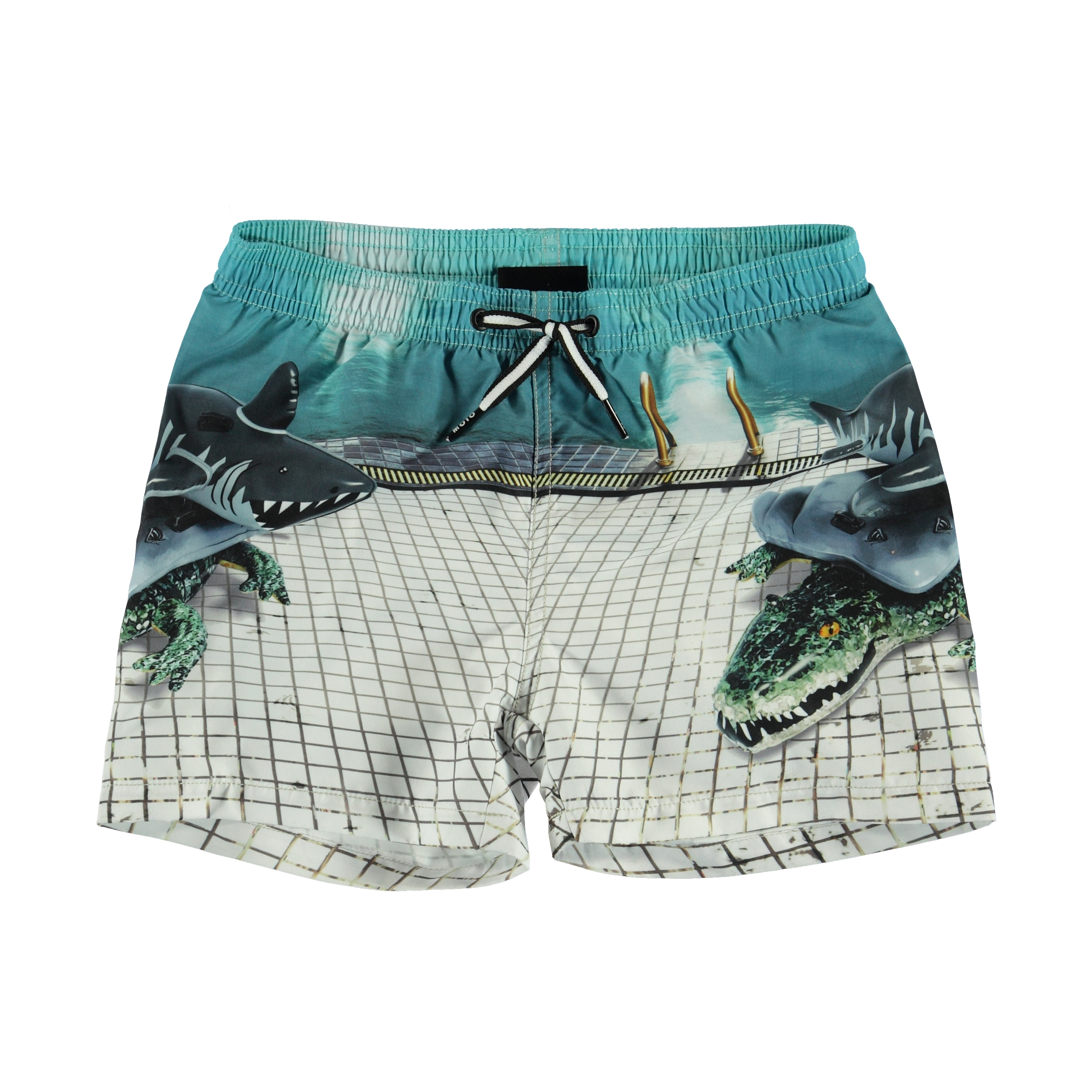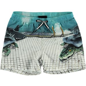 De coola baddjuren har kastat sig i en hög vid poolkanten och är redo för lek på badshortsen Niko. Niko har resår i midjan med knytband, som ger en bra rörelsefrihet. Kombinera badshortsen med en matchande t-shirt. Molo's badkläder har UV skyddsfaktor 50+. Produkten är CE-märkt och testad enligt standarden EN-13758-1.