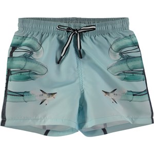 Korta badshorts med en digitaltryckt vattenrutschbana. Badshortsen har resår i midjan med knytband samt ficka och Molo's logo patch bak. Produkten har UV-skydd 50+ och har testats både före, under och efter användelse.