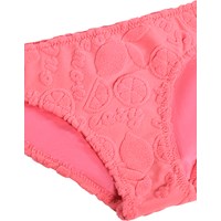 Stretchig rosa bikini med citrusmönster i återvunnen polyester och UV-skydd 50+. Bikinin har en bred topp, breda axelband, en djup rygg och är helt fodrad. Underdelen har en elastisk midja, en normal passform och är också helt fodrad.