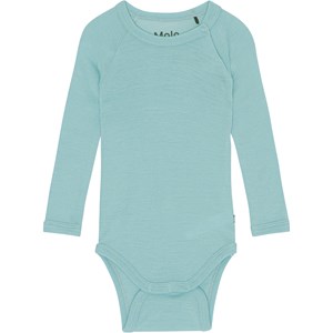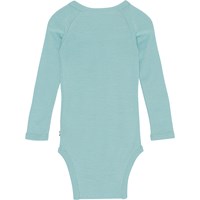 Blå babybody i 100% merinoull. Bodyn har långa ärmar, tryckknappar vid axeln och mellan benen, vilket gör den enkel att ta av och på. Matcha ev. denna body med byxorna, Sting, i samma mönster.