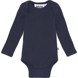 Faros är en blå unisex babybody i ribbad kvalitet. Faros har tryckknapp i kragen och mellan benen, vilket gör den enkel att ta av och på.