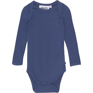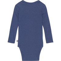 Mörkblå babybody i ribbad jersey. Denna body är tillverkad i ribbad viskosjersey och har långa ärmar. Matcha ev. denna body med byxorna, Sting, i samma färg.