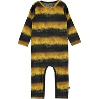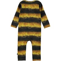 Fenez är en babydräkt med långa ben och ärmar i breda svarta och gula ränder som ser ut som ett bi. Tryckknappar i nacken och benen gör bodyn enkel att ta på och av.