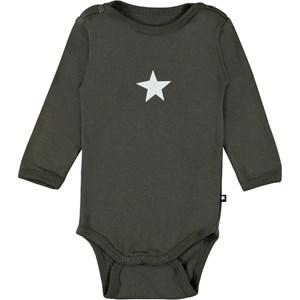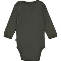 Foss är en mörkgrön långärmad body.Tryckknappar i nacken och mellan benen gör bodyn enkel att ta på och av.