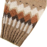 Brun babyoverall gjord av mjuk alpackaull med ett nordisk-inspirerat mönster. Babyoverallen har långa ärmar och ben samt en praktisk knäppning framtill och är perfekt för att hålla sig varm under kalla dagar.