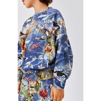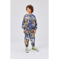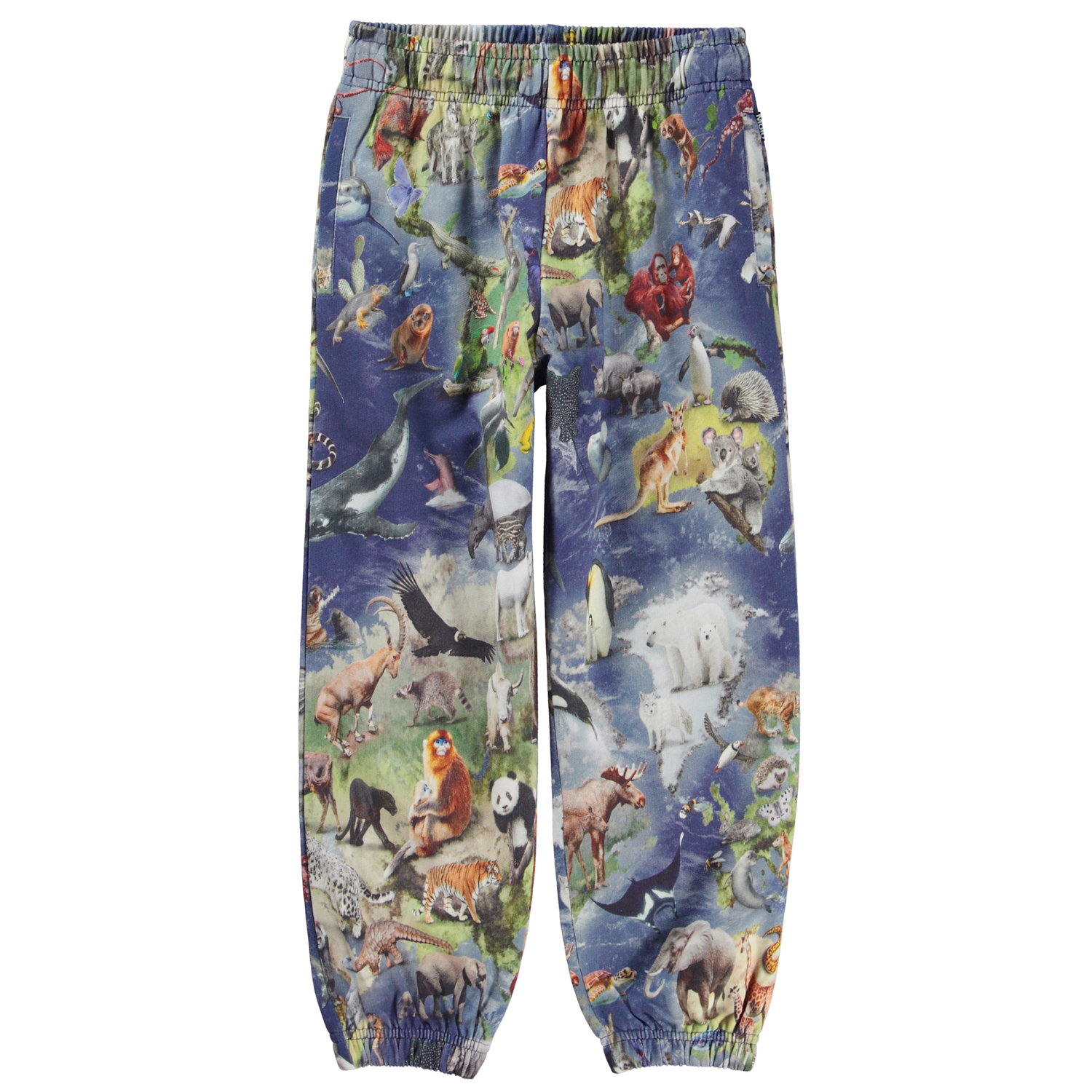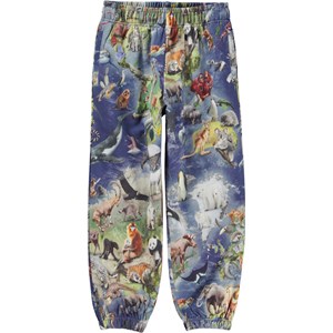 Adan är ett par blå unisex sweatpants med jordens olika djur. Byxorna har gummiband i midjan och vid benslut.