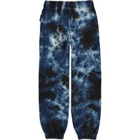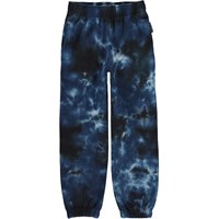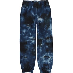 Adan är ett par unisex sweatpants med blått och svart tie-dy mönster. Byxorna har gummiband vid benslut och i midjan, samt fickor framtill och en enkel påsydd ficka bak.