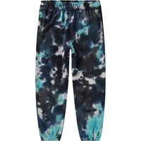 Blå tie-dye sweatpants i ekologisk bomull med en borstad insida, vilket gör dem mjuka och varma att ha på. Byxorna har en normal passform, gummiband i midjan med en invändig dragsko, samt elastiska benslut och sidofickor.