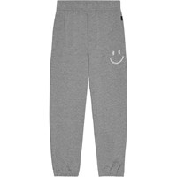 Gråmelerade sweatpants tillverkade av ekologisk bomull med en borstad insida, vilket gör dem mjuka och varma att ha på. Byxorna har en normal passform, gummiband i midjan med en invändig dragsko, elastik vid anklarna och sidofickor. De har ett vitt grafiskt texttryck som säger "Yoy Me Togetherness", placerat på framsidan av ena låret.