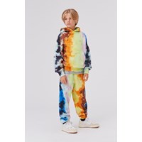 Adan är ett par unisex sweatpants med färgrikt tie-dye mönster. Byxorna har gummiband vid benslut och i midjan, samt fickor framtill och en enkel påsydd ficka bak.