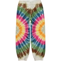 Vita sweatpants med multifärgad cirkel i tie-dye. Dessa byxor är tillverkade i 100% bomull, har gummiband och invändigt knytband i midjan, gummiband vid anklarna, fickor i sidorna och en bakficka. Byxorna har en normal passform. Molo´s tie-dye är handgjort och kan därför variera från plagg till plagg.