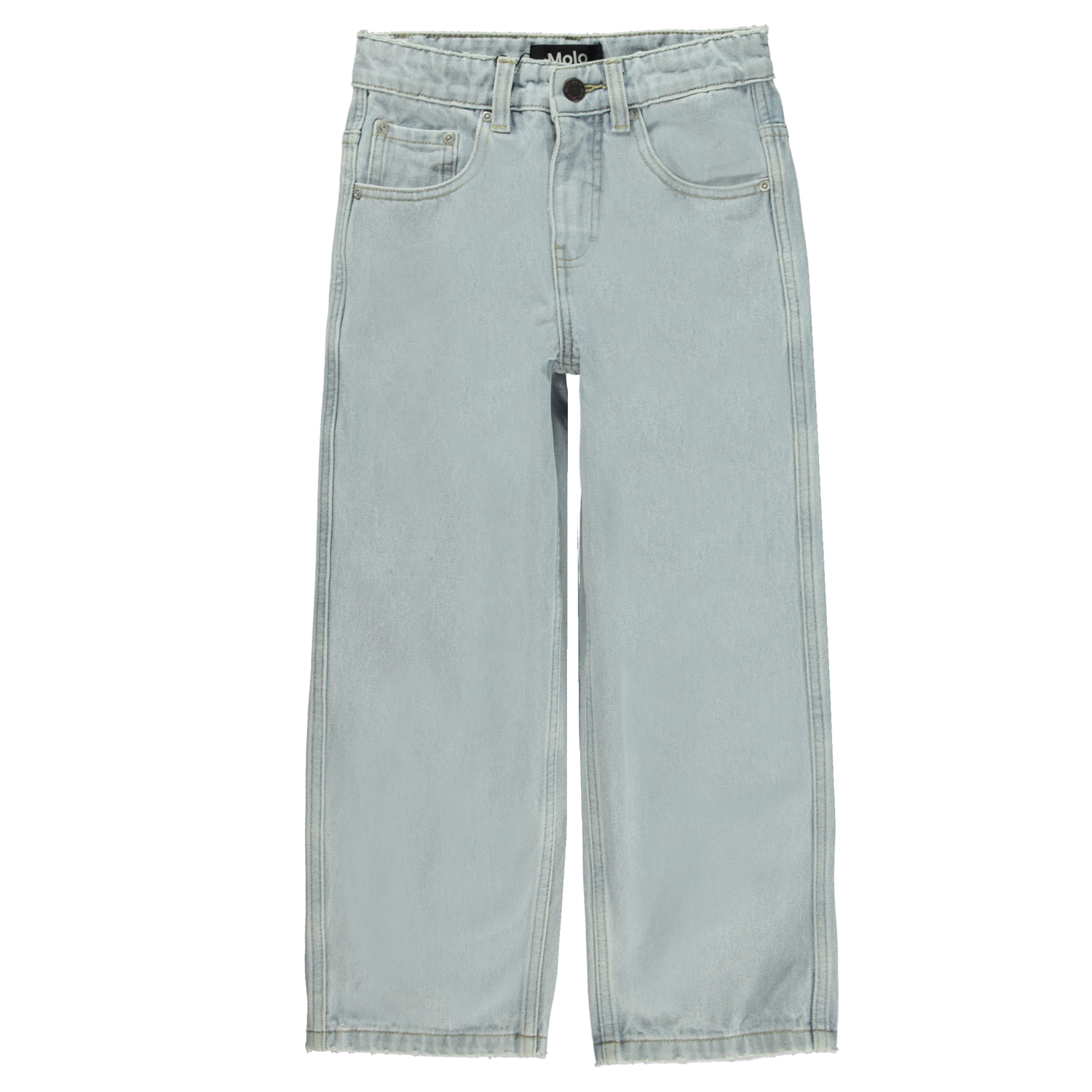 Aiden är Molo´s nya unisex jeans i ljusblå som har en cool och extra bred passform med inspiration hämtad från skejtmiljön. Den rymliga passformen och breda vidden i benen, gör byxorna enkla att röra sig i. Byxornas midja kan justeras med invändigt gummiband, så att de assar perfekt till alla barn. Aiden är tillverkade i 100% bomull, vilket gör dem extra slitstarka. Notera att storlekarna upp till 134 har tryckknapp och inte vanlig jeansknapp.