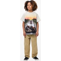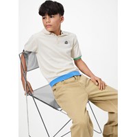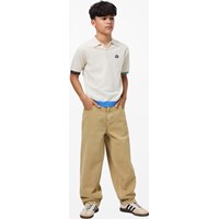 Beige jeans i bomull. Jeansen har 5 fickor, raka ben, gylf med dragkedja och en lös passform med justerbar resår i midjan. De minsta storlekarna (92–134) har en tryckknapp, medan storlekarna 140–176 har en klassisk jeansknapp.