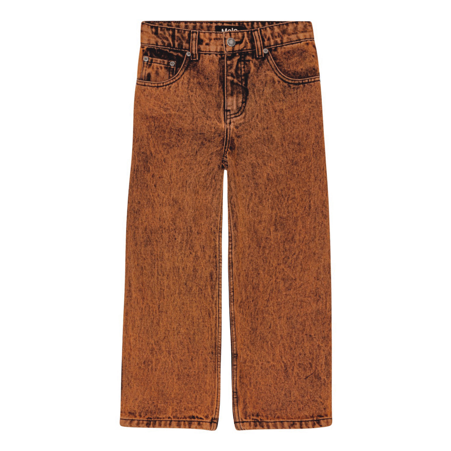 Jeans tillverkade av ekologisk bomull med en orange tvätt. Byxorna har en lös passform, vida ben och 5 fickor med gylf med dragkedja. Inspirerade av skateboardkulturen har byxorna en justerbar resår i midjan, så att de passar perfekt på alla barn. Storlekarna 92-134 har en tryckknapp, medan storlekarna 140-176 har en vanlig jeansknapp.