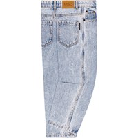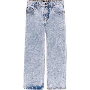 Ljusblå jeans i mjuk ekologisk bomull med 5 fickor, vida ben och dragkedja. Inspirerade av skateboardkulturen med en avslappnad passform. Midjan kan justeras med ett invändigt gummiband, och storlekarna 92-134 har en tryckknapp, medan storlekarna 140-176 har en jeansknapp.