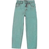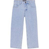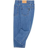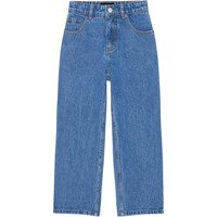 Blå jeans med 5 fickor i tvättat bomullsdenim. Jeansen har extra bred passform med inspiration från skatemiljön. Byxorna har raka ben, knapp och gylf samt justerbart gummiband i midjan så att de passar perfekt till alla barn. Notera att storlekarna upp till 134 har tryckknapp och inte vanlig knapp.