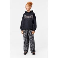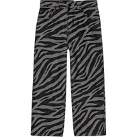 Gråa och svarta jeans med zebraränder. Jeansen har 5 fickor, vida ben och en dragkedja. Inspirerade av skateboardkulturen med en lös passform. Midjan kan justeras med ett invändigt gummiband. Storlekarna 92-134 har en tryckknapp och storlekarna 140-176 har en jeansknapp.