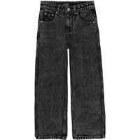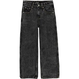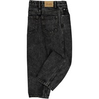 Svarta jeans i en grå tvätt. Dessa jeans är tillverkade i 100% bomull, har långa ben och en lös passform. Byxornas midja kan justeras med invändigt gummiband, så att de passar perfekt till alla barn. Storlek 92-134 har tryckknapp så att byxorna är enkla att ta av och på - storlek 140-176 har vanlig jeansknapp. Huvuddelen av detta plagg är tillverkade av ekologisk bomull.