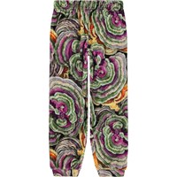 Multifärgade sweatpants i sammet med svampmönster. Mönstret är i gröna, lila och gula nyanser och är inspirerat av de vackra avbildningar som finns på de tränedbrytande konsolsvamparna. Desa svampar är en viktigt del av skogens ekosystem och bryter ner gamla tröd så att nytt liv kan få plats. Dessa byxor är tillverkade i en mjuk bomull/polyester böandning, har gummiband i midjan, långa ben med ribbkant vid fötterna och en normal passform. Matcha ev. dessa byxor med tröjan, Monti, i samma mönster för ett äkta fungi set.