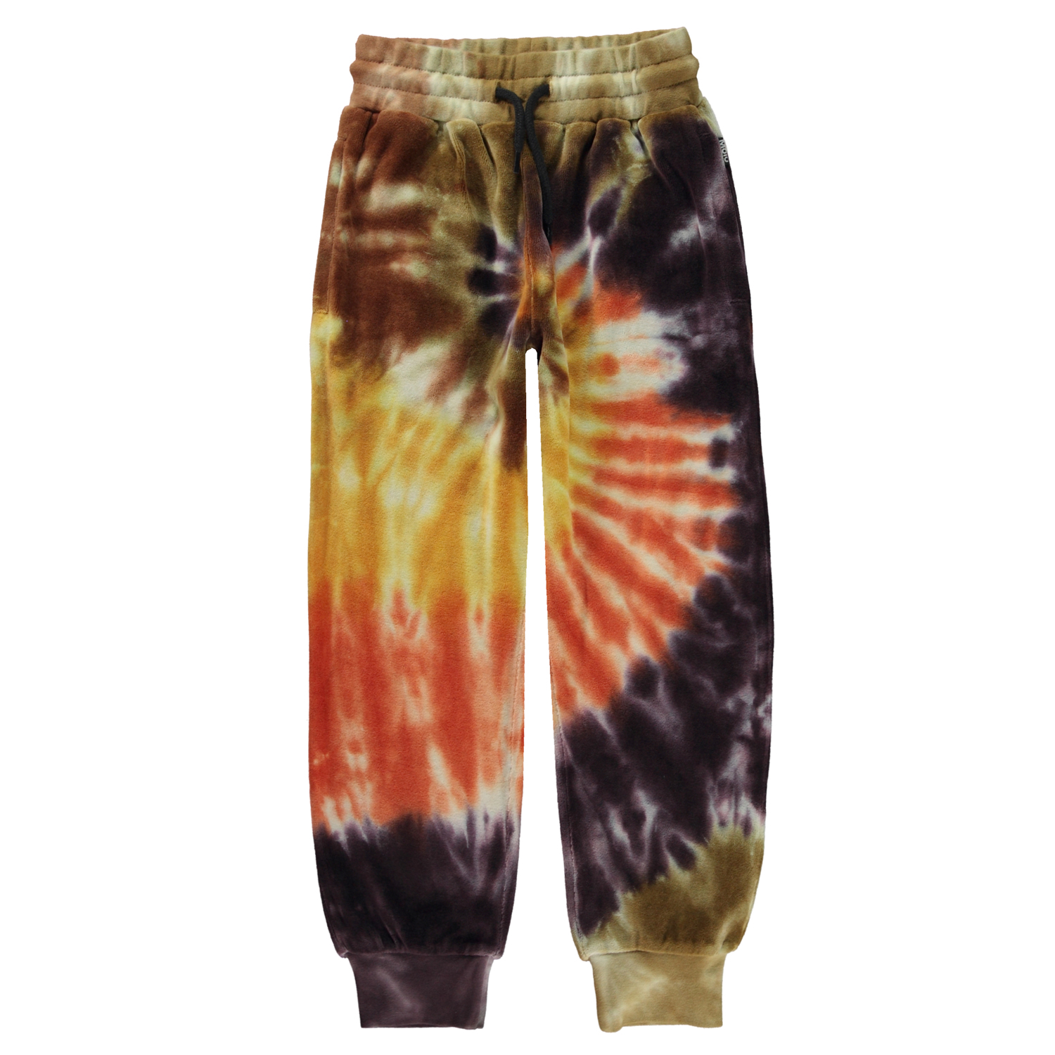Multifärgade sweatpants med tie-dye i olika orange, bruna och lila nyanser. Dessa byxor är tillverkade i 100% bomull, har gummiband och invändigt knytband i midjan, gummiband vid anklarna och fickor i sidorna. Byxorna har en normal passform. Matcha ev dessa byxor med tröjan, Mike, i samma färg, för det perfekta setet. Molo´s tie-dye är handgjort och kan därför variera från plagg till plagg.