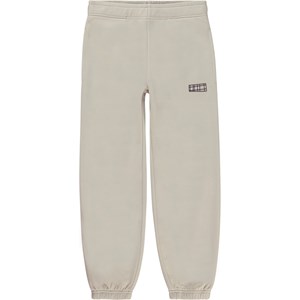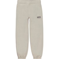 Am är ett par beige unisex sweatpants med gummiband i midjan och vid benslut.