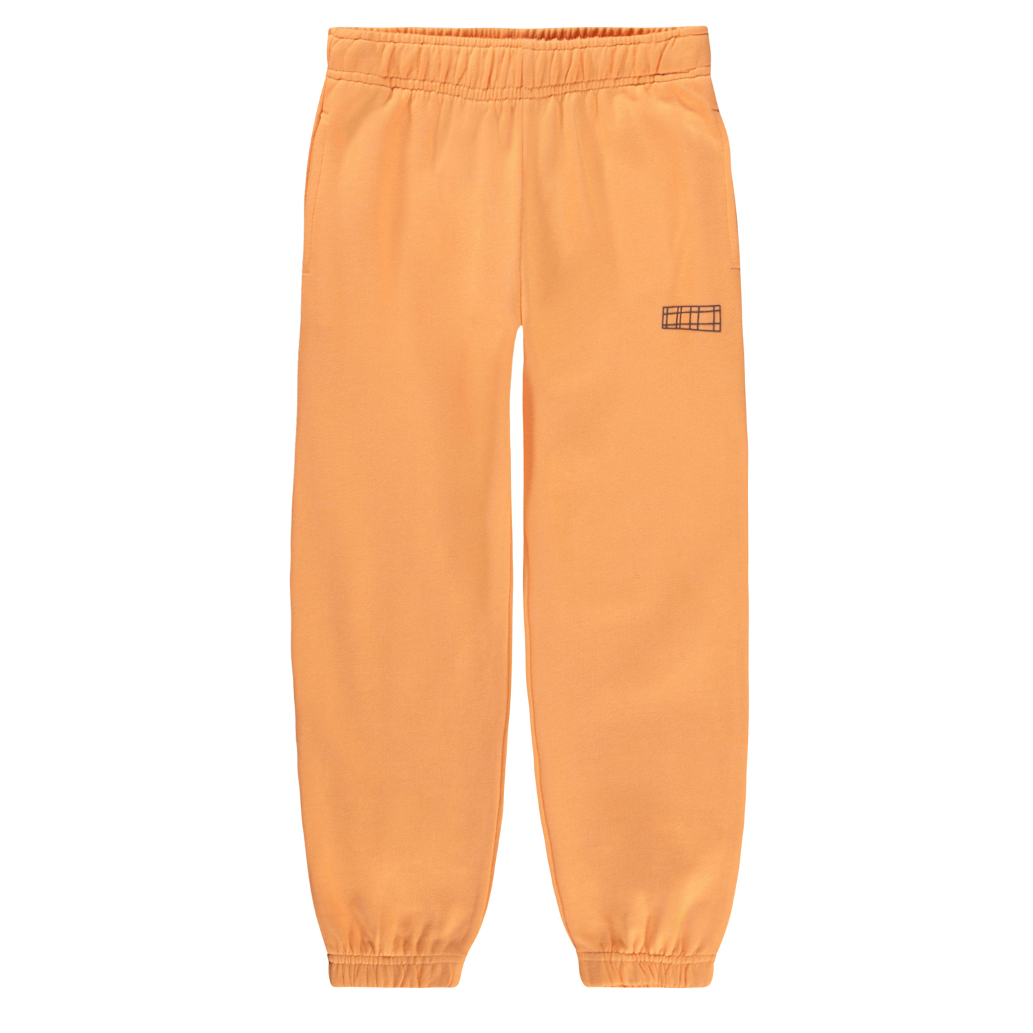 Am är ett par orange unisex sweatpants med gummiband i midjan och vid benslut.