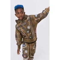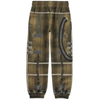 Bruna sweatpants med mönster som ser ut som en rymddräkt, men med en retrotvist. Med den varma metallic looken blir det nästan som en slags rustning, som att du är en rymdriddare i rymden. Dessa byxor är tillverkade i 100% bomull, har gummiband och invändigt knytband i midjan, gummiband vid anklarna och fickor i sidorna. Byxorna har en normal passform. Matcha ev. dessa byxor med tröjan, Moz, i samma mönster för det perfekta setet.
