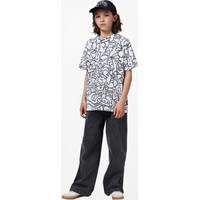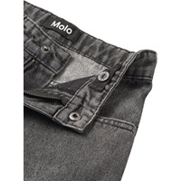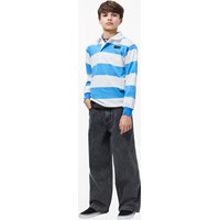 Grå denimjeans i ekologisk bomull i en cool, skaterinspirerad stil. Byxorna har en klassisk 5-ficksdesign och en bred, avslappnad passform, perfekt för aktiva dagar med mycket rörelse. Midjan kan justeras med en invändig resår, så att jeansen sitter bra på alla barn. De minsta storlekarna (92-134) har en praktisk tryckknapp, medan storlekarna 140-176 är utrustade med en klassisk jeansknapp.