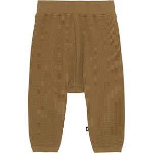 Grönbruna våffelvävda byxor med gummiband i midjan och vid benslut.