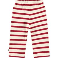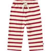 Röd- och vitrandiga ekologiska byxor för de små. Byxorna har gummiband i midjan med snörning och är bekväma och lätta att bära.