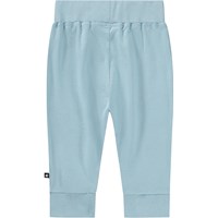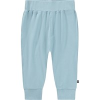 Blå byxor för de små i ekologisk bomullsjersey. Byxorna har en bred, elastisk ribb runt midjan och anklarna för att säkerställa en bra och bekväm passform. De är mjuka och flexibla med gott om utrymme för rörelse.