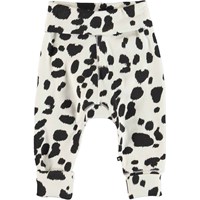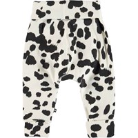 San är ett par svart-vita babybyxor med dalmatiner. Byxorna har bred gummibandskant i midjan och vid benslut som båda är vikta.