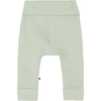 San är ett par mintgröna babybyxor i ribb. Byxorna har brett gummiband i midjan och vid benlut, och båda är uppvikta. Kombinera med matchande överdel.