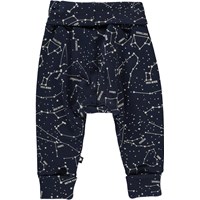 San är ett par mörkblå babybyxor med stjärnkartan. Byxorna har brett gummiband i midjan och vid benslut. Kombinera byxorna med matchande tröja.