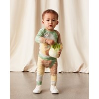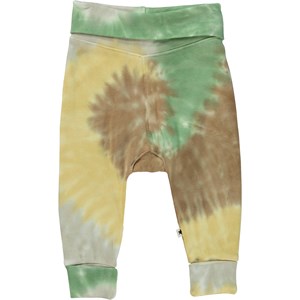 San är ett par babybyxor med tie-dye spiral. Byxorna har brett gummiband i midjan och vid bensluten, som båda är uppvikta. Allt Molo´s ti-dye är handgjort vilket betyder att det kan variera från plagg till plagg.