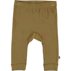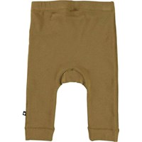 Seb är ett par grönbruna babybyxor. Byxorna har smala ben, ribbkant och gummiband i midjan som säkrar en bra passform.