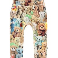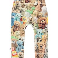 Multifärgade leggings i ekologisk bomull för de små. Leggingsen är tighta med gummiband i midjan, mjuka och bekväma att röra sig i. De har ett heltryck av gosiga björnar som kramas, har kul och festar.