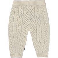 Råvita kabelstickade byxor till de minsta. Dessa byxor är tillverkade i en bomull/ull blandning, har långa ben och ribbstickning i både midjan och benslut. Matcha ev. dessa byxor med tröjan, Bjork, i samma kvalitet för det perfekta setet.