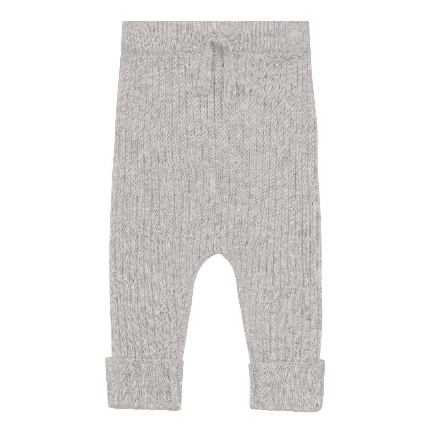Shadow är ett par fina ljusgrå ribbstickade byxor med cashmere. Byxorna har gummiband och knytband i midjan och uppvik vid benen. Kombinera med matchande ribbstickad kofta.