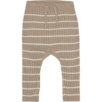 Beige ribbstickade byxor med vita ränder till de minsta. Dessa byxor är tillverkade i en härlig och mjuk bomull/ull blandning och har knytband i midjan. Matcha ev. dessa byxor med tröjan, Bendix, i samma kvalitet och få det perfekta setet.
