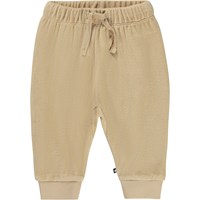 Beige byxor i mjuk bomullsvelour till de minsta. Dessa byxor är tillverkade i 100% bomull, har gummiband med knytband i midjan och ribb vid fötterna. Matcha ev byxorna med tröjan, Day, i samma mönster för det perfekta setet.