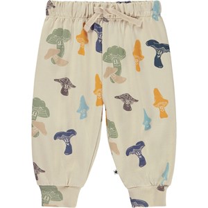 Råvita byxor med små söta tecknade svampar i olika färger till de minsta. Dessa byxor är tillverkade i 100% bomull, har gummiband med knytband i midjan och ribb vid fötterna. Matcha ev. byxorna med tröjan, Disc, i samma mönster för det perfekta setet.